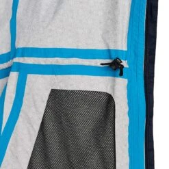 - Kapuze mit Schirm, Volumenregulierung hinten (mit Klettverschluss) und elastischen Einsätzen an den Seiten